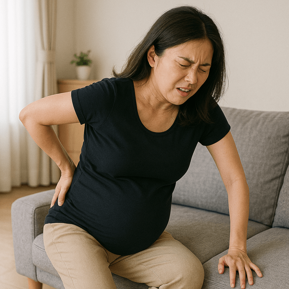 妊娠中期は急激な体重増加が始まる時期です。このため腰椎や股関節への圧力が高まり、無理な姿勢を取ると筋肉や靭帯に負担がかかりやすくなります。体のバランスを保とうとして反り腰や前かがみになる傾向が出やすく、これが腰痛や脚のしびれの原因になることもあります。
